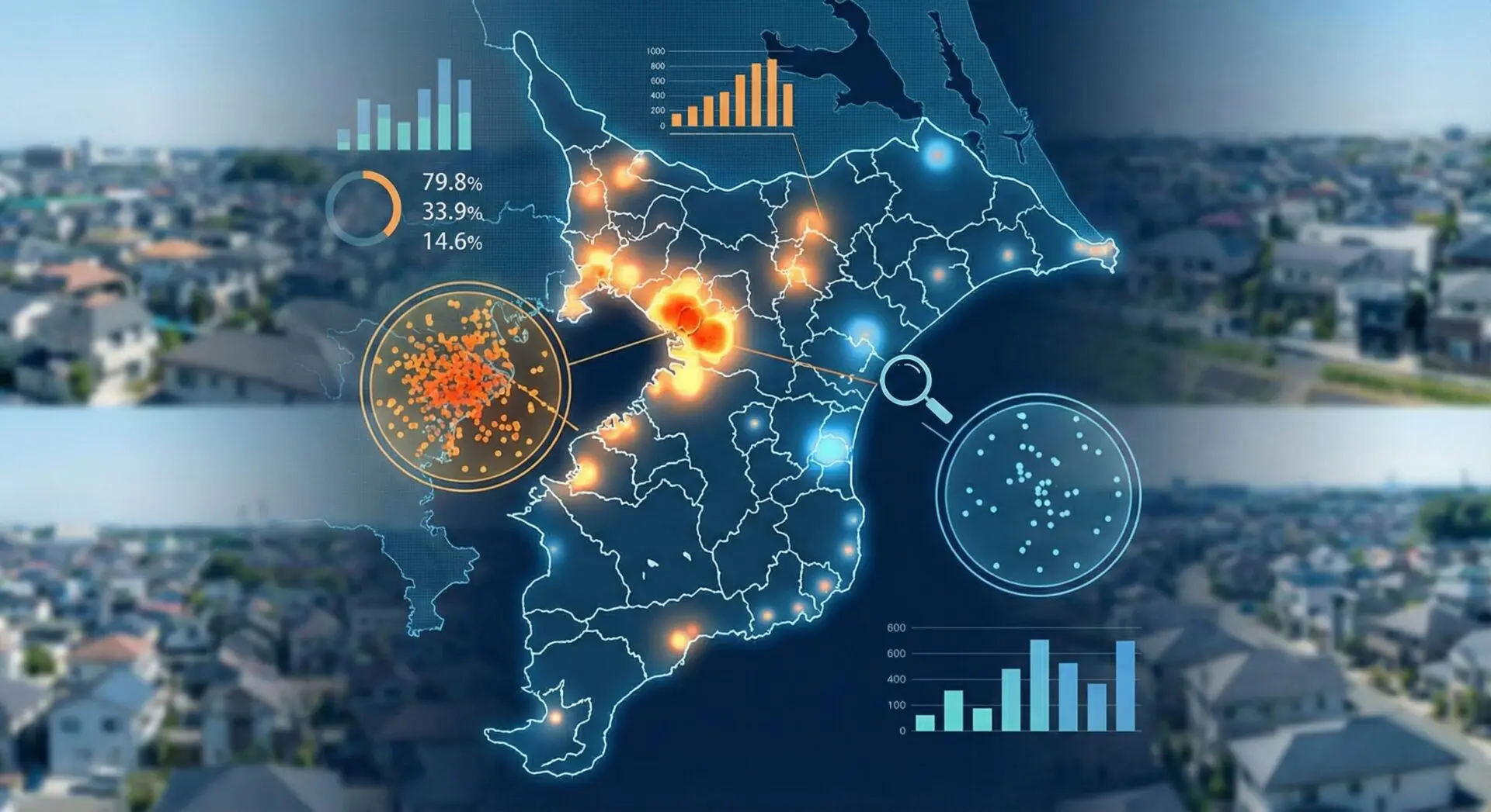 人口・世帯データ:RESASおよび国勢調査(3km圏を集計)、JSTAMAP